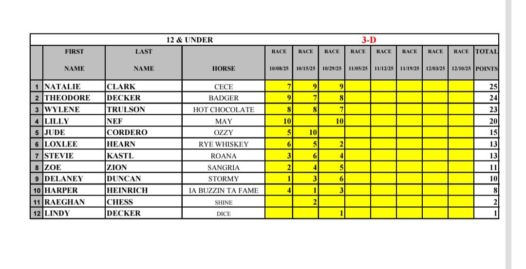 VC2025-10-31 09:06:332025-10-31 09:06:3312 & Under Race Results 10-29-2025
